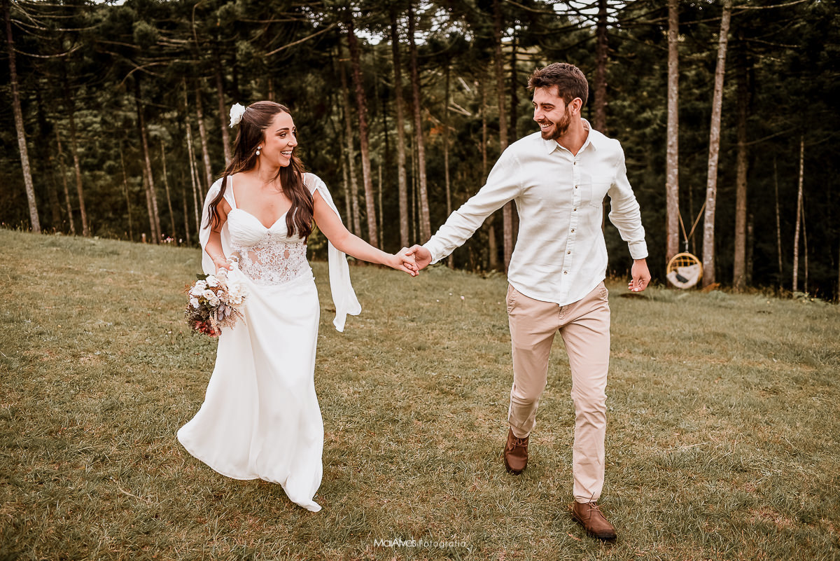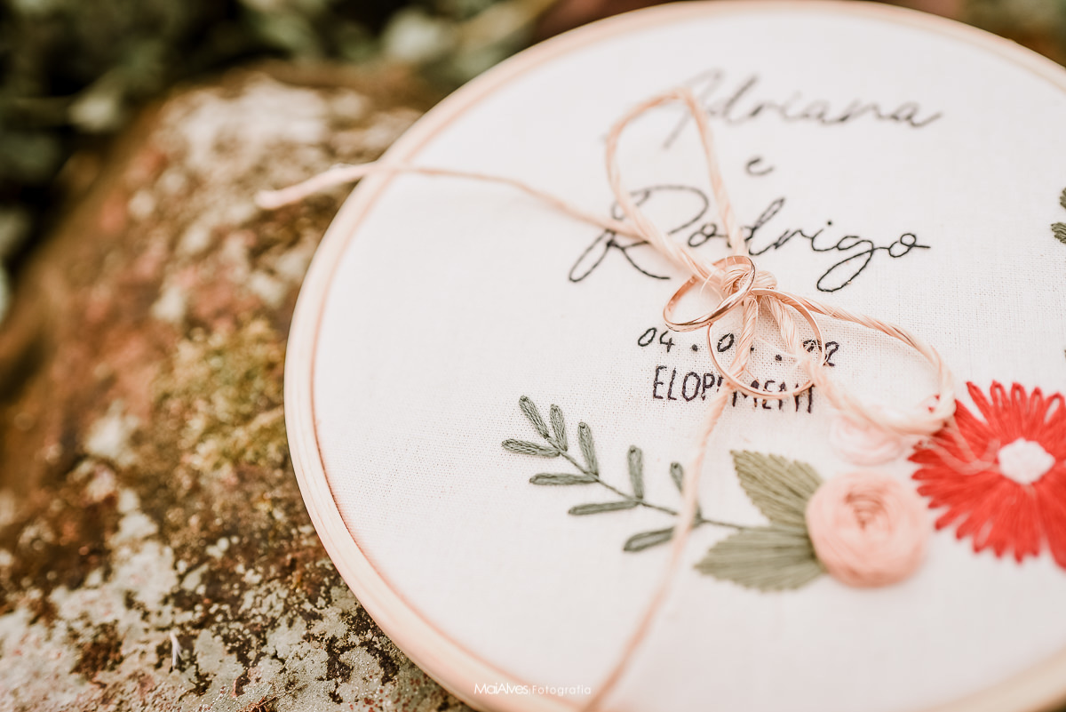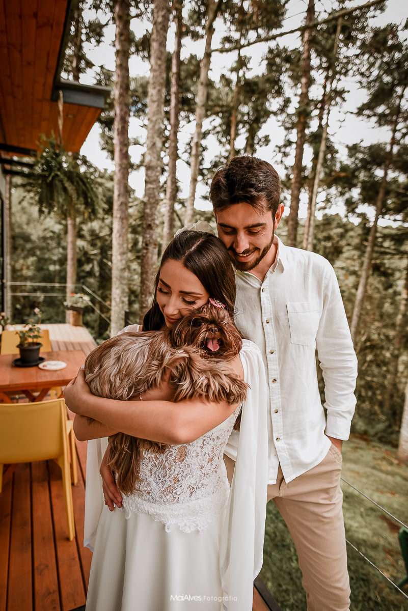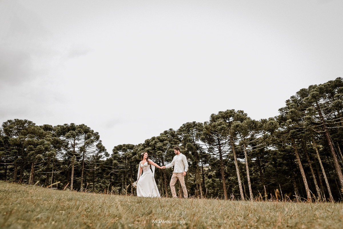 A ideia principal era fazer no canyon fortaleza, como a previsão do tempo era de chuva, decidimos fazer na pousada onde estavam hospedados, onde tem um espaço incrível, uma floresta de araucárias, que deixou a cerimonia ainda mais encantadora, e com um charme especial, além de cada detalhe feito com muito amor pela Adri.