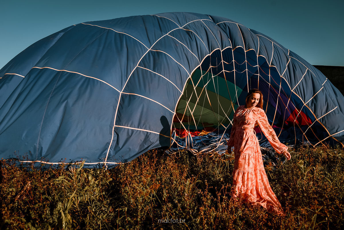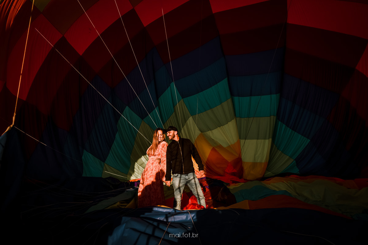 Após a permissão do piloto, eles já saíram do cesto e agora com um pouco mais de calma, continuamos nosso ensaio, conseguimos entrar dentro da lona do balão, e aproveitamos o cesto e a lona para mais registros do passeio.